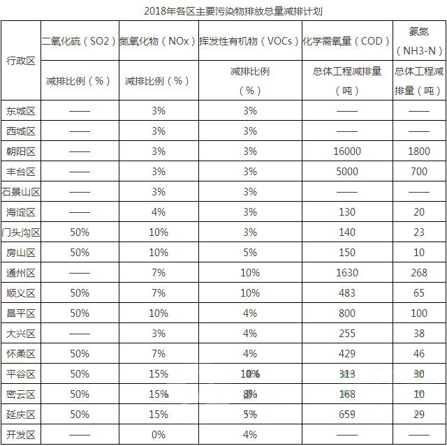 北京市環(huán)境保護局關于印發(fā)2018年各區(qū)主要污染物總量減排計劃和重點企業(yè)主要污染物總量控制任務的通知