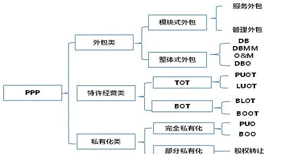 從廣義上來說,PPP指的是企業(yè)參與提供傳統(tǒng)上由政府獨(dú)自提供的公共產(chǎn)品或服務(wù)的模式。從世界銀行對(duì)PPP的分類來看,主要包括外包類、特許經(jīng)營類和私有化類。因此,BOT本質(zhì)上也可視為是PPP的一種。