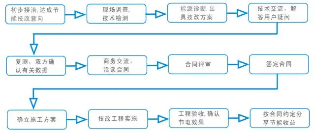 節(jié)能服務(wù)公司通過與客戶簽訂節(jié)能服務(wù)合同,為客戶提供包括:能源審計(jì)、項(xiàng)目設(shè)計(jì)、項(xiàng)目融資、設(shè)備采購、工程施工、設(shè)備安裝調(diào)試、人員培訓(xùn)、節(jié)能量確認(rèn)和保證等一整套的節(jié)能服務(wù),并從客戶進(jìn)行節(jié)能改造后獲得的節(jié)能效益中收回投資和取得利潤的一種商業(yè)運(yùn)作模式。