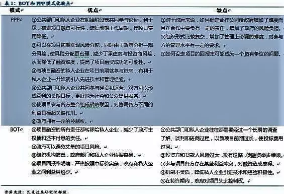 PPP的優(yōu)點(diǎn)在于政府能夠分擔(dān)投資風(fēng)險(xiǎn),能夠降低融資難度,雙方合作也能夠協(xié)調(diào)不同利益主體的不同目標(biāo),形成社會(huì)利益******化,但缺點(diǎn)在于增加了政府潛在的債務(wù)負(fù)擔(dān)。BOT優(yōu)點(diǎn)在于政府******可能的避免了項(xiàng)目的投資損失,缺點(diǎn)是投資風(fēng)險(xiǎn)大,私營資本可能望而卻步,且不同利益主體的利益不同,單方面利益******化的納什均衡并非全社會(huì)最優(yōu)。