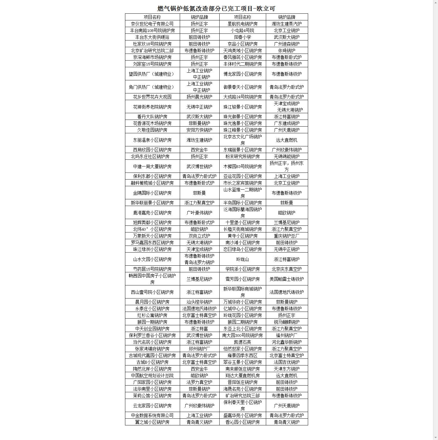 北京市燃氣鍋爐低氮改造業績表(2018年)