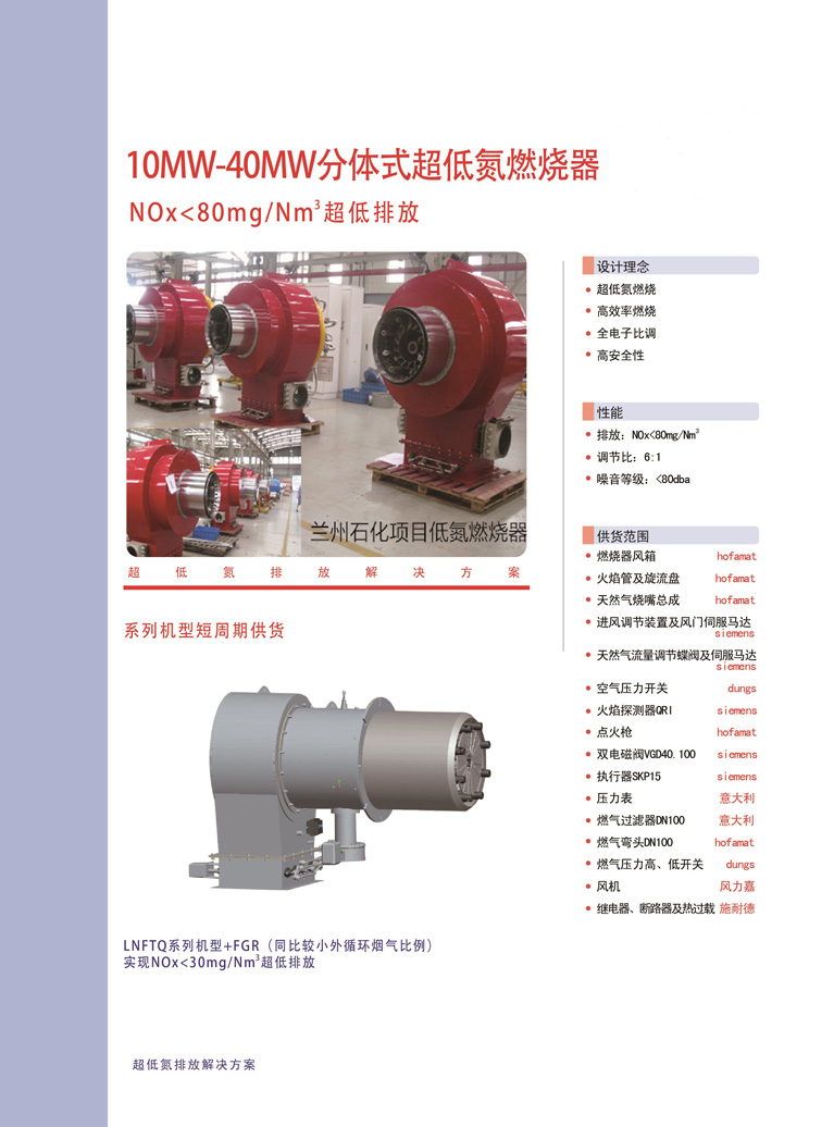 10MW-40MW分體式超低氮燃燒器<80mg/Nm3超低排放