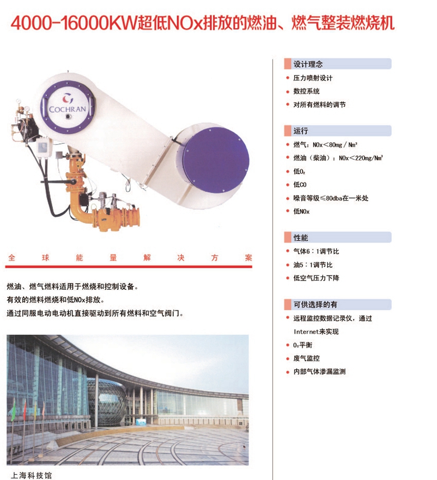 4000-16000KW超低NOx排放的燃油、燃氣整裝燃燒機(NOx<80mg/Nm3