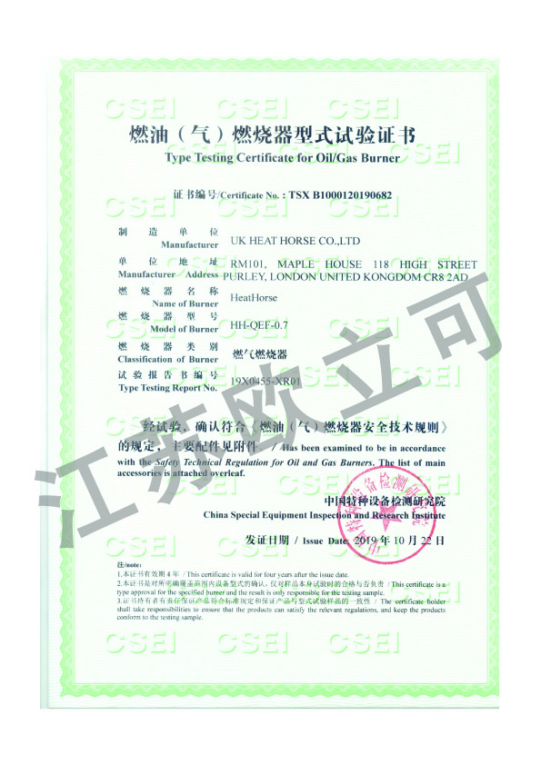 HH-QEF-0.7燃燒器型式試驗(yàn)證書
